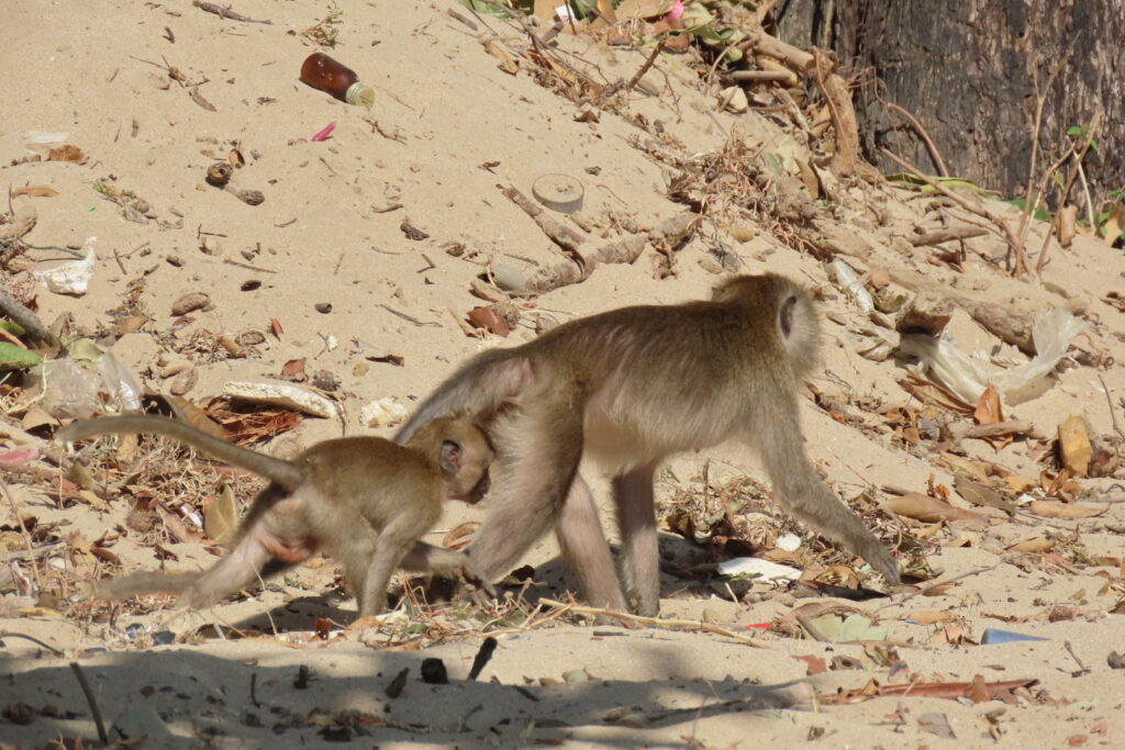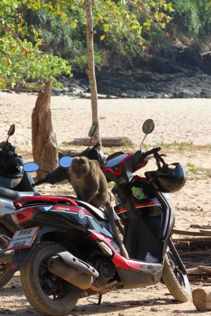 Nach einem Mittagessen geht es für uns zum Bamboo Beach. Aufgrund von starkem Wind und vielen Affen gehen wir nicht schwimmen, sondern liegen im Schatten einer Palme und lesen (wir wollen nicht, dass unser Rucksack durchwühlt wird). Irgendwann wird es uns dann aber doch zu warm und wir fahren nochmal zu einem affenfreien Strand zum Baden.