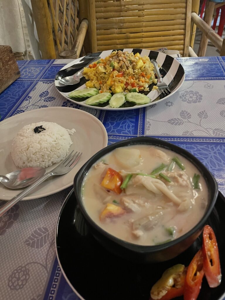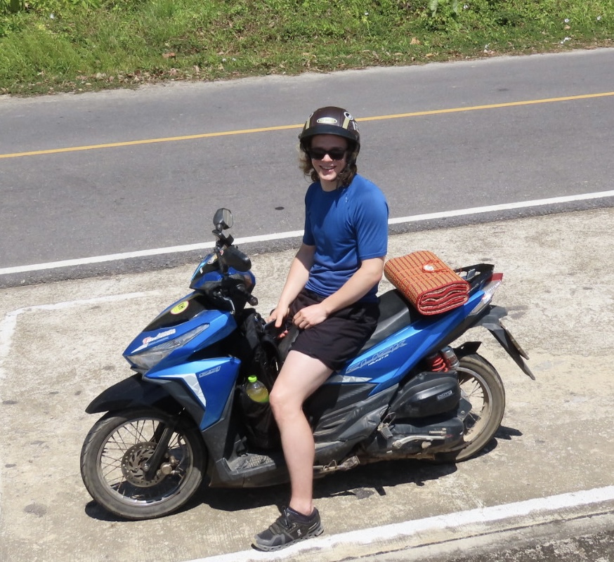 Der Tag startet mit einem Frühstück in der Unterkunft. Es gibt 2 Scheiben Toast und Omlette. Dann leihen wir einen Roller für insgesamt 3 Tage aus. Mit 125ccm werden wir zu Zweit jeden Berg hochkommen und all die langsamen Rollerfahrer überholen. Einen Führerschein will der Vermieter nicht sehen – es reicht wenn man auf die Frage ob man fahren kann mit „ja“ antwortet. Wir fahren in die Altstadt von Koh Lanta, schlendern durch die Gassen und kühlen uns mit einem Ananasshake ab. Danach fahren wir zu einem Strand und liegen dort bis zum Sonnenuntergang im Sand.