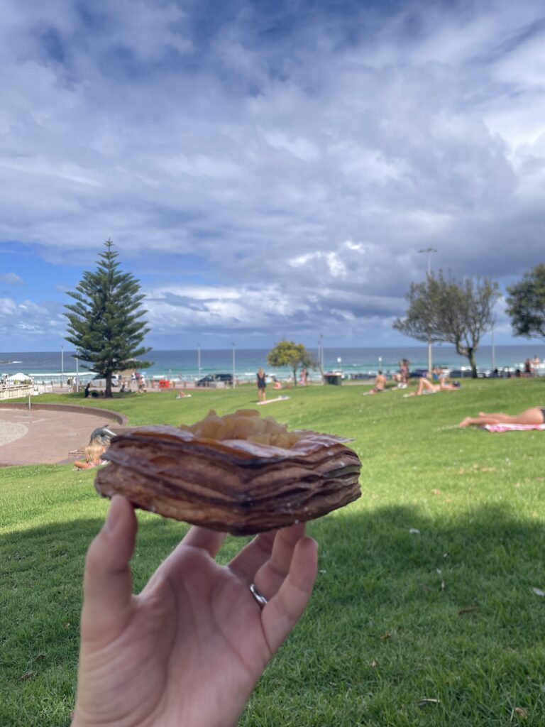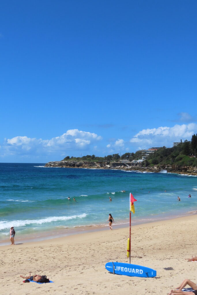 Unsere Mittagspause dehnen wir am Bronte Beach bis zu 1,5 Stunden aus und beobachten die Surfer im Wasser. Dann geht der Weg weiter, an einem Friedhof direkt an der Klippe vorbei bis wir Bondi Beach erreichen.
