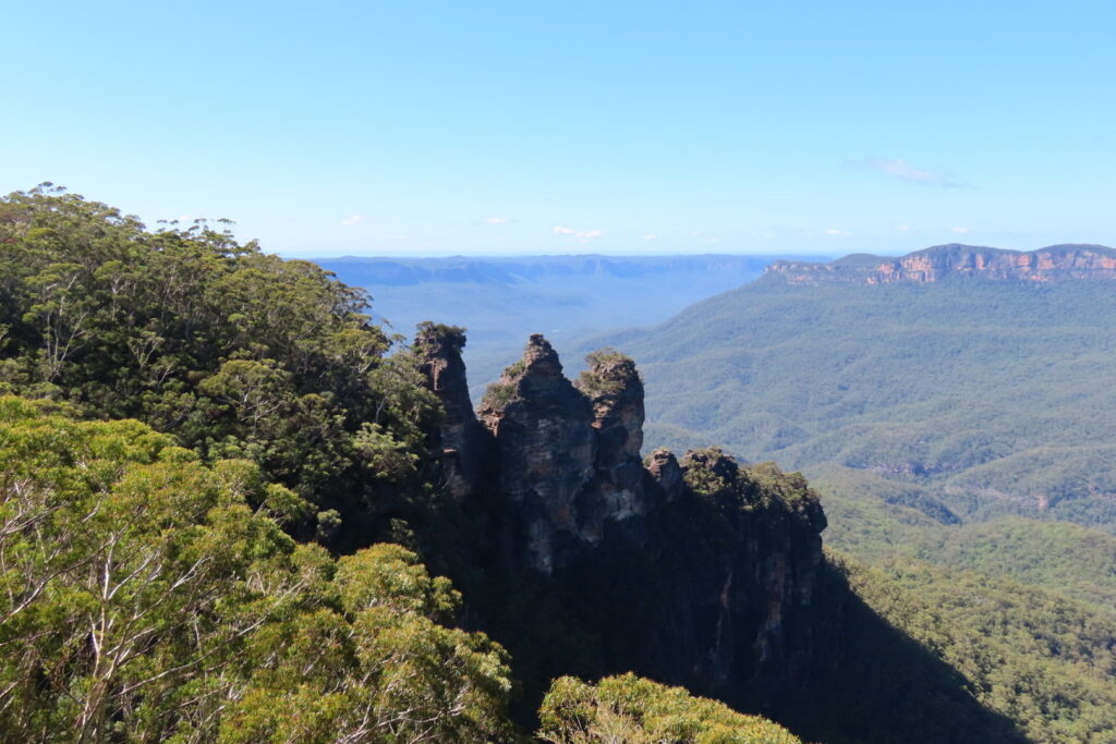 Unser Wecker klingelt 6:00 Uhr morgens. Wir ziehen uns an und machen uns auf den Weg zum Bahnhof, von wo aus wir 2h nach Katoomba fahren. Hier beginnt unsere Wanderung. Erst geht es zu den Three Sisters, bis hier hin sind noch viele Menschen mit uns unterwegs.