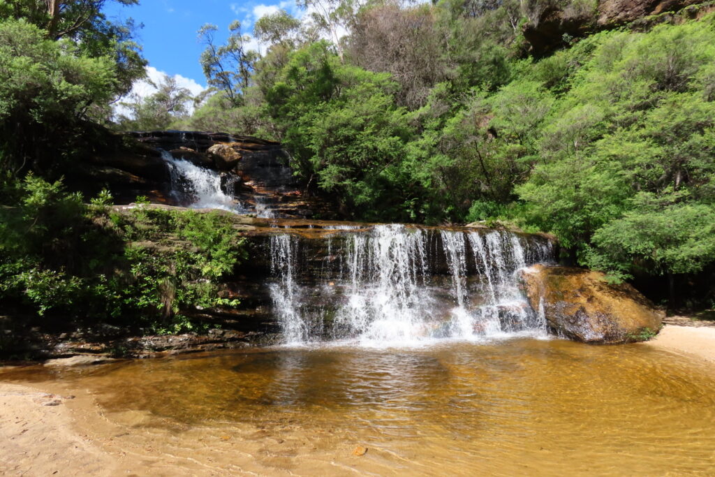 Auf dem zweiten Teil nach Wentworth Falls laufen wir an vielen Wasserfällen vorbei. Das Wasser ist eiskalt. Nach 25km kommen wir 10min vor Zugabfahrt am Bahnhof in Wentworth Falls an. Wir sind ziemlich fertig und unsere Beine tun weh von den unzähligen Treppen.
