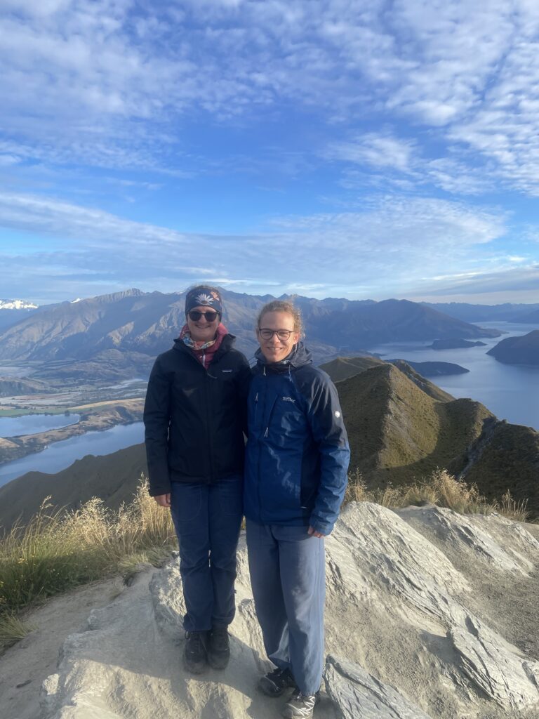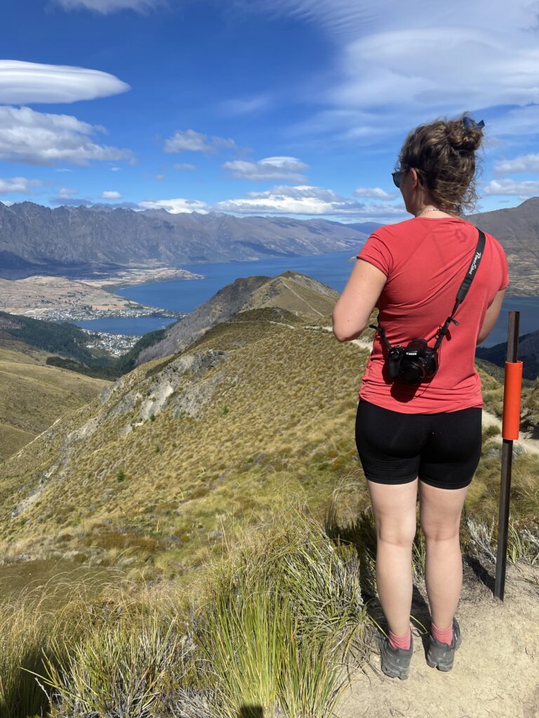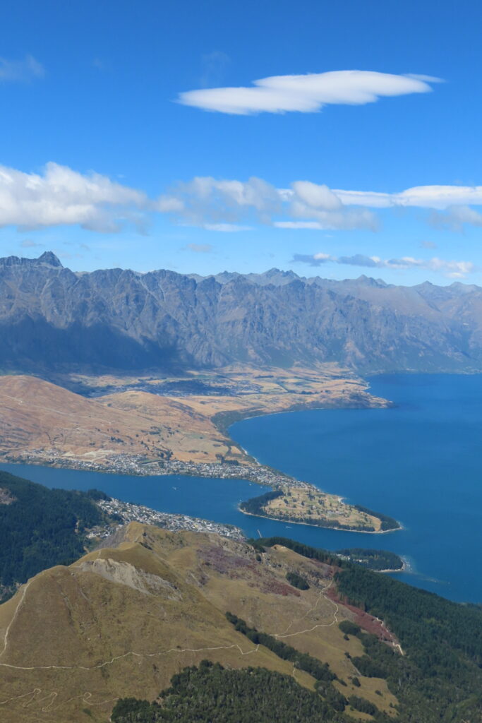 Heute wollen wir wieder wandern gehen. Es geht auf den „Hausberg“ von Queenstown. Die ersten 2km könnte man mit einer Gondel zurücklegen, aber wir haben ja Beine. Nach einer etwas schwierigen Parkplatzsuche starten wir unsere Tour. Sie führt uns zuerst durch einen Bikepark und dann moderat den Berg hoch. Der Weg ist etwas schlecht ausgeschildert und an einer Abzweigung treffen wir auf eine andere deutsche Wanderin, die ebenfalls etwas ratlos auf ihr Handy schaut. Gemeinsam finden wir den richtigen Weg (ohne auf einen der Mountainbike- Trails zu kommen) und gehen gemeinsam zum Gipfel. Sie ist schon zum 2. Mal in Neuseeland und hat noch ein paar Tipps für uns. Die Strecke ist durch die Gespräche kurzweilig. Das letzte Stück vom Sattel auf den Gipfel ist knackig. Der Weg ist steil und felsig, wir kommen ganz schön ins schwitzen. Die Aussicht jedoch macht alle Anstrengungen hinfällig.