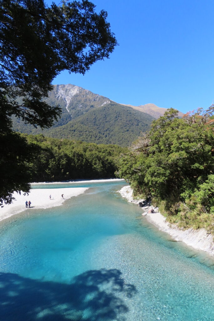 Dann machen wir uns auf den Weg. An den Blue Pools machen wir einen Zwischenstopp und laufen ca. 45min hin und zurück, um das erstaunlich blaue Wasser des Flusses zu sehen.