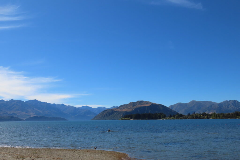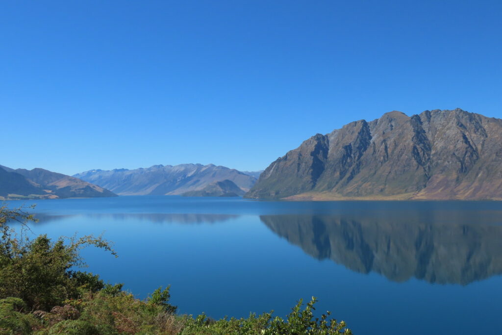 Nach ein paar weiteren Kilometern sehen wir ihn dann: Lake Wanaka liegt direkt vor uns. Der See ist mit 45km ziemlich lang. Wir fahren am Lake Wanaka entlang und dann führt die Straße auch am Lake Hawea entlang. Wir genießen die Aussichten und halten einige Male an, um Fotos zu machen.