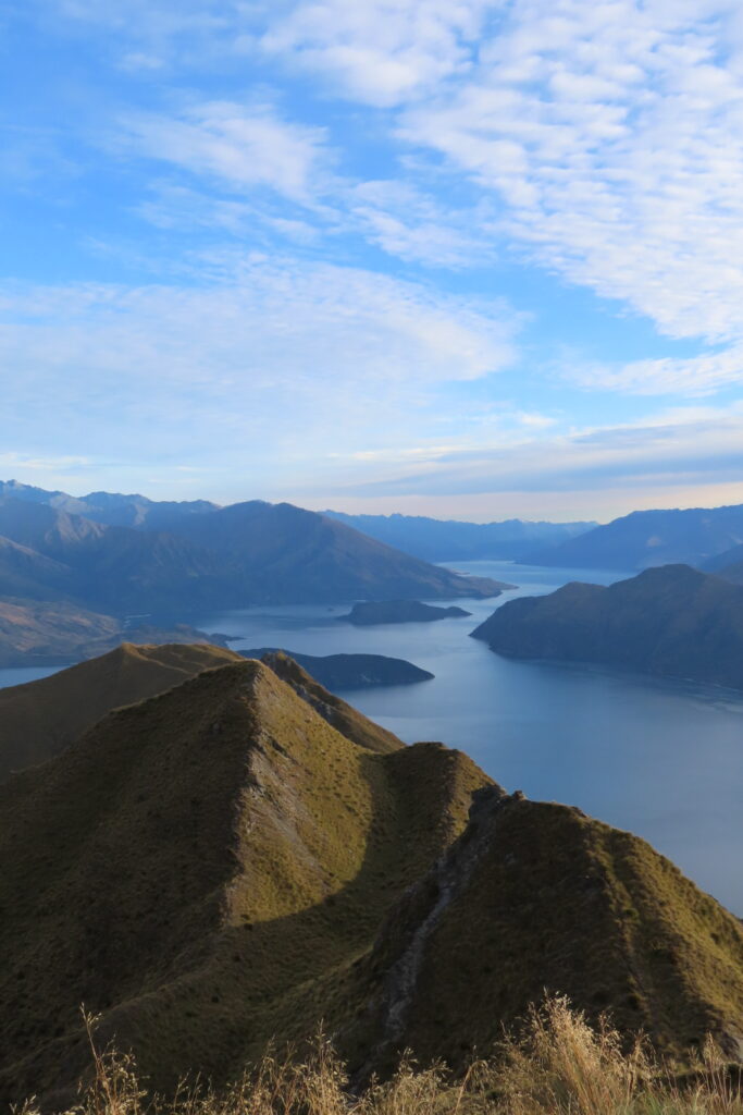 Etwas windgeschützt frühstücken wir, aber es ist schnell so kalt, dass wir absteigen. Auf dem Weg nach unten kommen wir noch an einer von Neuseelands berühmtesten Aussichten auf den Lake Wanaka vorbei.