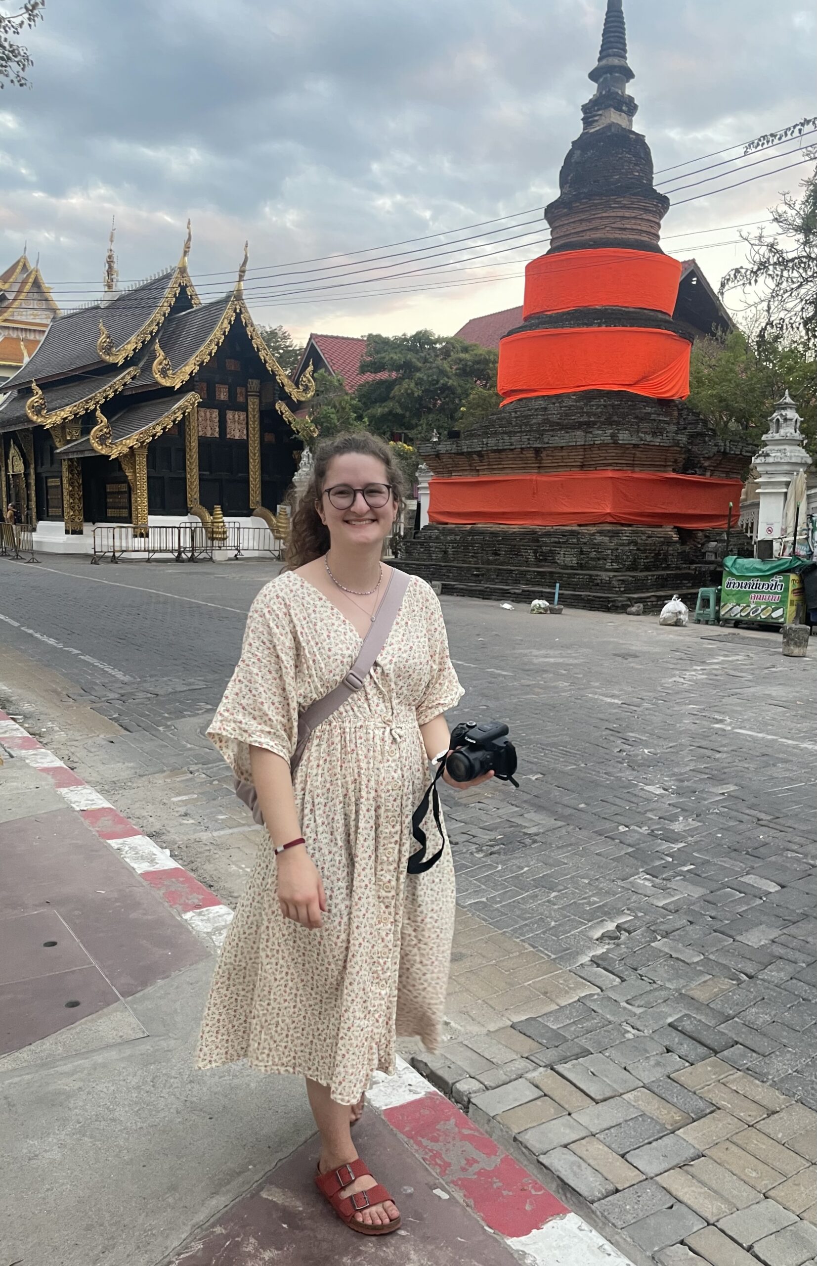 Der nächste Tag startet mit einer 3,5 stündigen Stadtführung. Mit 15 anderen Besuchern- hauptsächlich Kanadier und US-Amerikaner- schauen wir uns 3 verschiedene Tempel an, probieren Kokospancakes und erfahren eine Menge über die Geschichte von Thailand und Chiang Mai. Das Englisch unserer Stadtführerin ist gut, aber mit reichlich Akzent und sehr schnell gesprochen- wir haben Mühe hinterher zu kommen und zu verstehen. Den restlichen Tag verbringen wir mit einem Spaziergang durch Chinatown und dem Genießen von unserem ersten Thaitea- ein typisches Getränk aus Schwarzem Tee.