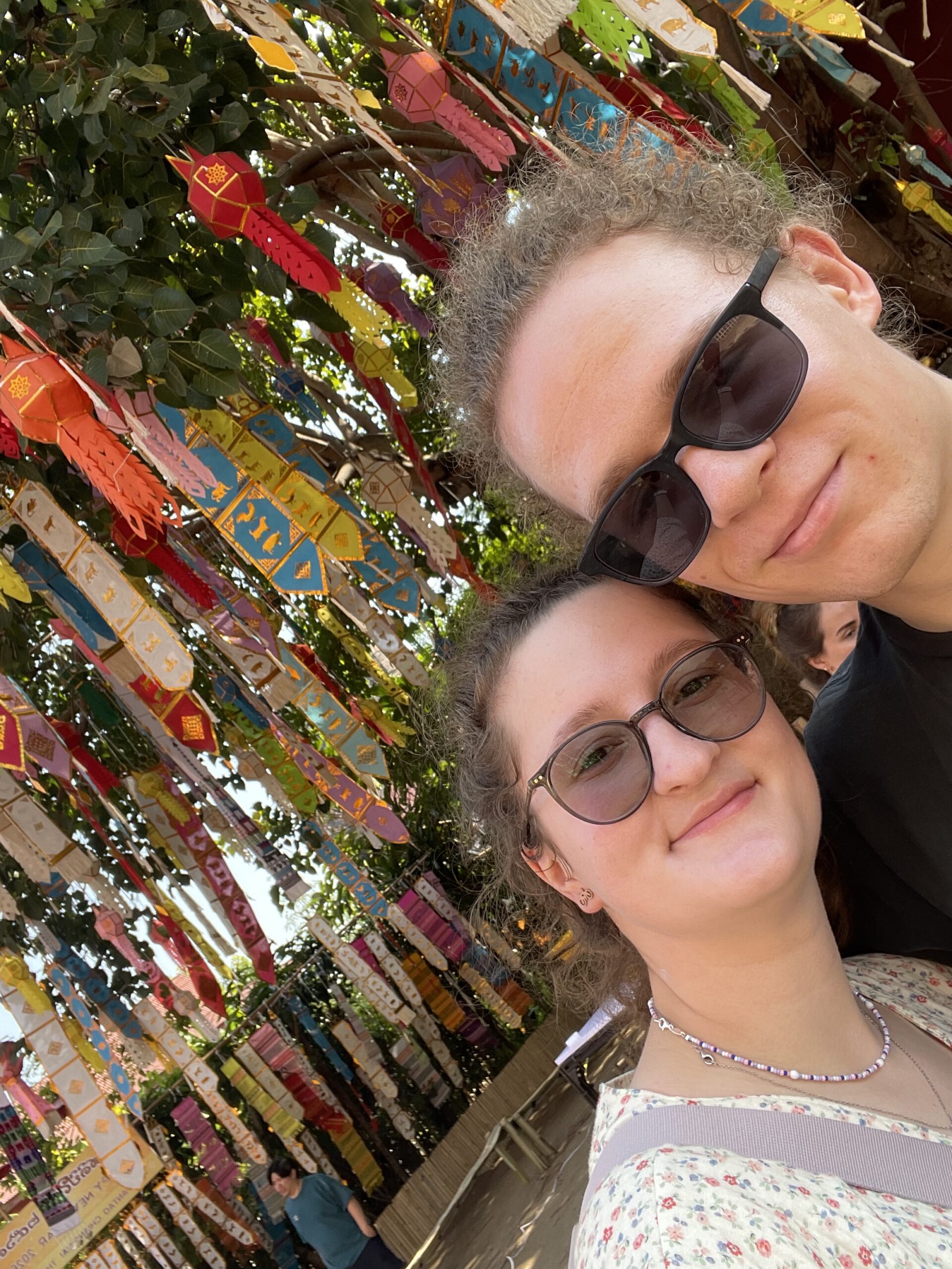 Nachdem wir die Nacht und den Vormittag im Nachtzug verbracht haben, sind wir müde und mit schmerzendem Körper in Chiang Mai angekommen. In Thailand Nachtzug fahren ist ein Abenteuer. Es war eiskalt, da man die Fenster nicht schließen kann und dazu ungefähr so laut, wie wenn ein Güterzug vorbei fährt- 12h lang. Im Hotel angekommen waren wir erstmal duschen und haben einen Powernap gemacht, danach waren wir frisch genug für einen ersten Rundgang durch Chiang Mai. Wir haben in einem Restaurant in einer Garage lecker gegessen und sind durch die Stadt spaziert. Am Abend gönnen wir uns eine Thaimassage. Wir werden jeder 1 Stunde am ganzen Körper massiert- das tut teilweise echt ganz schön weh, aber ist auch sehr schön. In der Nacht können wir zum ersten Mal mit offenem Fenster schlafen, denn hier im Norden Thailands sind nachts nur ca. 16 Grad Celsius. Tagsüber sind natürlich trotzdem 30 Grad und 11 Stunden Sonnenschein, wie bisher die ganze Zeit.